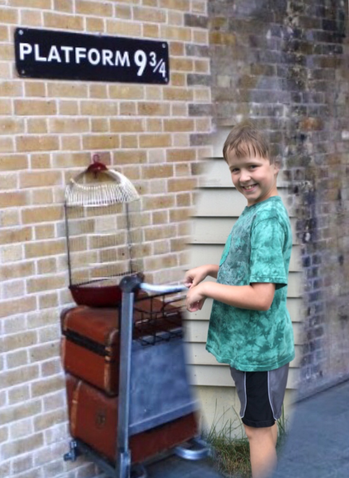 All of these photos of HBB and MKG students getting onto their own, homemade Platform 9 3/4s are INCREDIBLE! I love each one–SO creative in its own way! Thank you, Potterheads and Potterhead families for creating some photo magic for our entertainment!