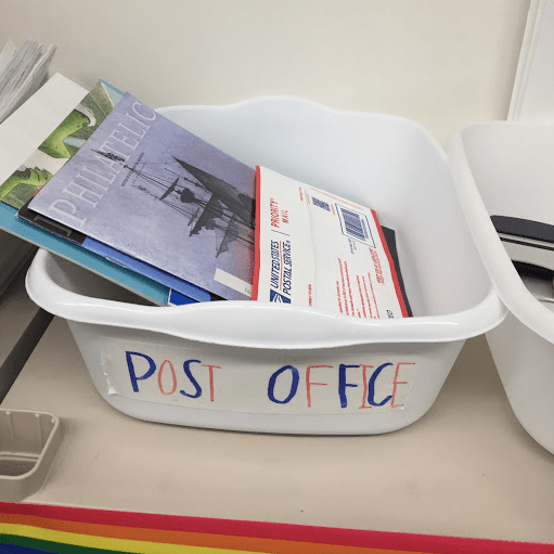 I changed the name of a classroom job from “distributor” to “mail carrier” to check the post box and deliver mail and papers.
