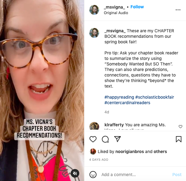 I know that Scholastic Book Fairs aren’t equitable and show loads of privilege, but I’m still going to recommend books to my young readers and their families. So I learned how to make Instagram Reels. Whew! I *truly* understood how my grandparents must’ve felt when they learned how to email. It took me DAYS to figure it out, and they are mediocre AT BEST. Still…I can’t wait to use that glitter filter again. All the heart eyes!